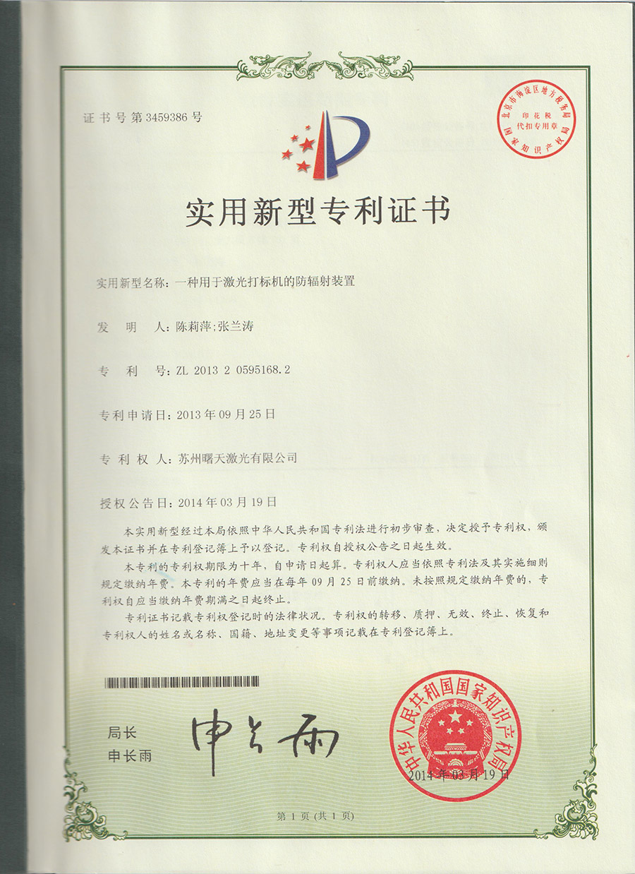 一種用于激光打標(biāo)機(jī)的防輻射裝置專利