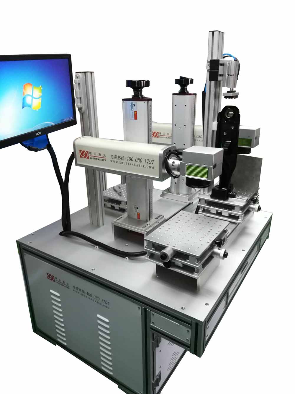 上圖為我司專業(yè)研發(fā)定制的雙頭光纖激光打標(biāo)機(jī),該設(shè)備專用于汽車配件打標(biāo),能在產(chǎn)品表面,正反面同時標(biāo)記不同內(nèi)容,大大提高了生產(chǎn)效率。三個工作臺,滿足了不同型號產(chǎn)品同時打標(biāo)的要求。