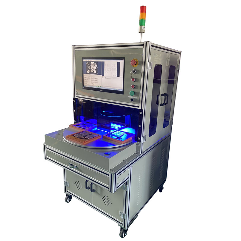 上圖為我司非標定制的四工位視覺激光打標機,該設備已在客戶處驗收合格,投入生產使用。