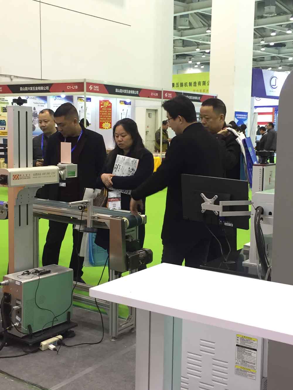 客戶對我們的在線光纖激光打標機以及PCB(印制電路板)激光打標機很感興趣。我們也安排了技術人員現場為客戶試樣,可以直觀的看到打標效果,為客戶在設備機型的選擇上提供了正確的信息。